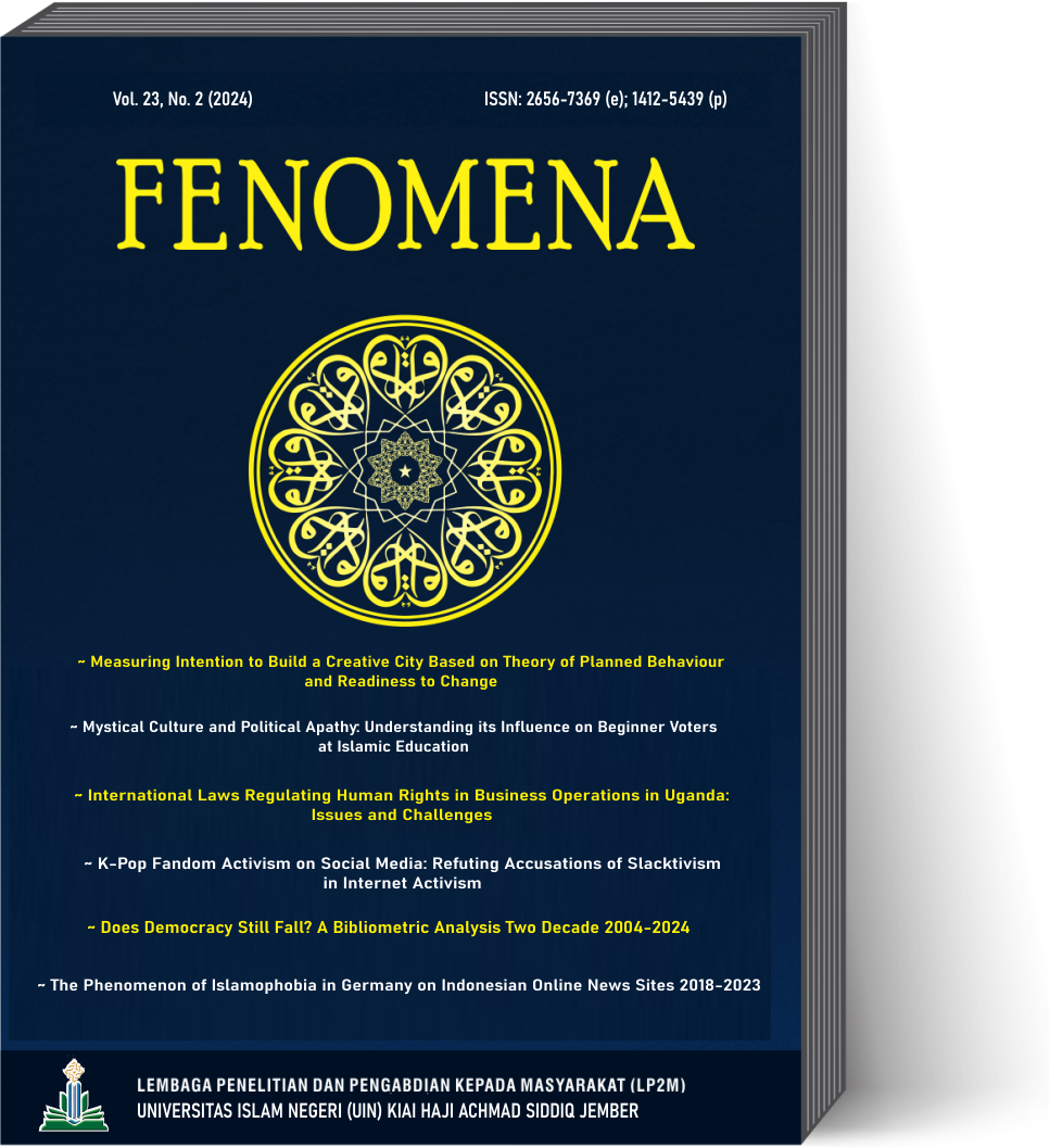 University Coverage: All articles in this issue (10 articles) were authored/co-authored by 42 authors from 22 institutions (9 countries of origin; Indonesia, Thailand, Pakistan, Malaysia, Australia, United States of America, Czech Republic, Nigeria, India): UIN Kiai Haji Achmad Siddiq, KISDA Thailand, IAIN Kediri, Universitas Pawyatan Daha Kediri, Brawijaya University Malang, Iqra University Karachi Pakistan, Universitas Darussalam Gontor, IIUM Malaysia, University of Melbourne, Central Java Branch of the Education and Training Center for Law and Human Rights, University of Indonesia, Ohio University United States of America, Universitas Tanjungpura, Universitas Gadjah Mada, Univerzita Palackého v Olomouci Czech Republic, University of Ibadan Nigeria, Universitas Islam Negeri Sunan Ampel Surabaya, Prince of Songkla University, STITNU Al Farabi Pangandaran, UIN Syekh Nurjati Cirebon, Kazian School of Management Mumbai India and Universitas Negeri Malang.